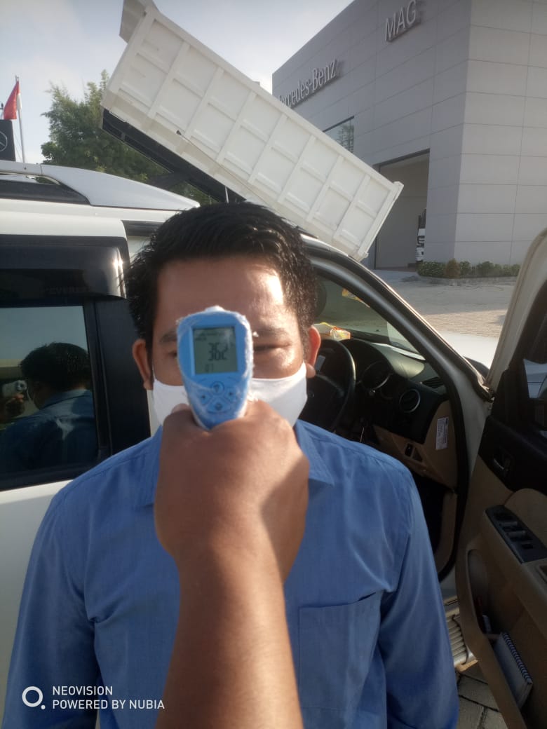 - pengukuran suhu sebelum memasuki area kantor
